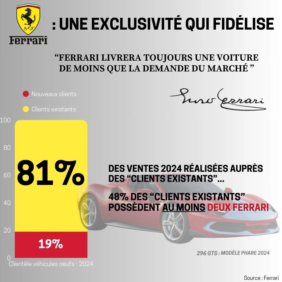 81 % des Ferrari vendues en 2024 l’ont été à des clients existants, dont près d’un sur deux en possédait déjà … au moins deux!
